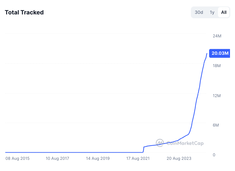 CoinMarketCap thống kê thị trường hiện tại có hơn 20 triệu đồng coin, token so với 2021 chỉ khoảng 20,500 đồng. Tất nhiên nhiều trong số 20 triệu này là memecoin nhưng nó cũng cho bạn thấy được thực tế dòng vốn dễ bị phân mảnh hơn rất nhiều.