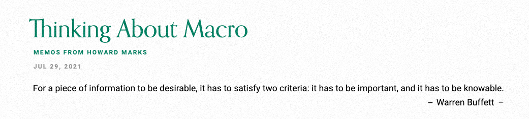 Mình càng tự tin hơn với cách tiếp cận này khi đọc được một bài memo của Howard Marks mà theo mình bạn nên đọc ít nhất 1 lần: Thinking About Macro.