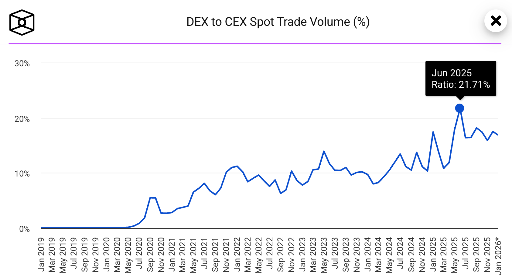 Vào tháng 6, tỷ lệ volume trên Dex so với Cex tiếp tục lập mức ATH mới trong năm. Có 2 lý do chính để lý giải cho việc này: